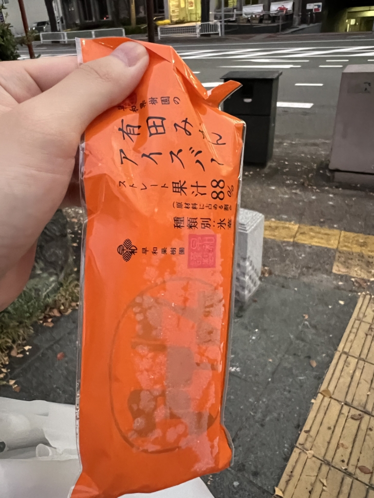 城からの帰り道は有田みかんアイスバーを食べながら帰りました。