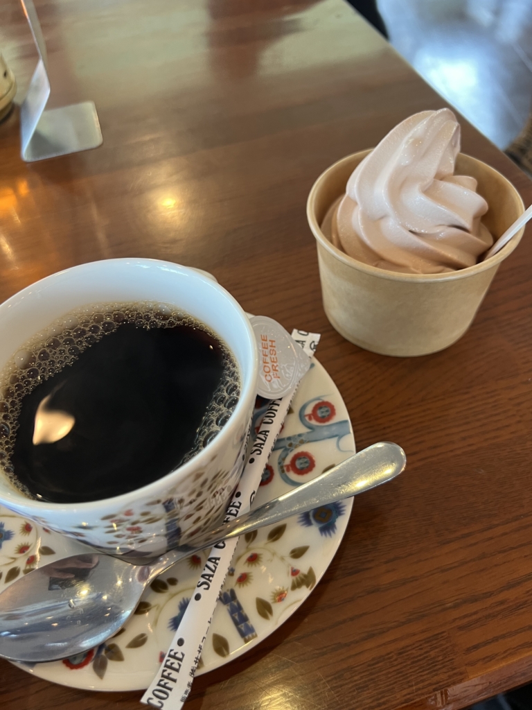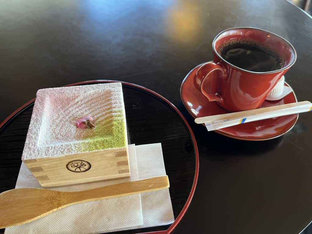 カフェ「樂」で枡ます コーヒーセットもいただきました。