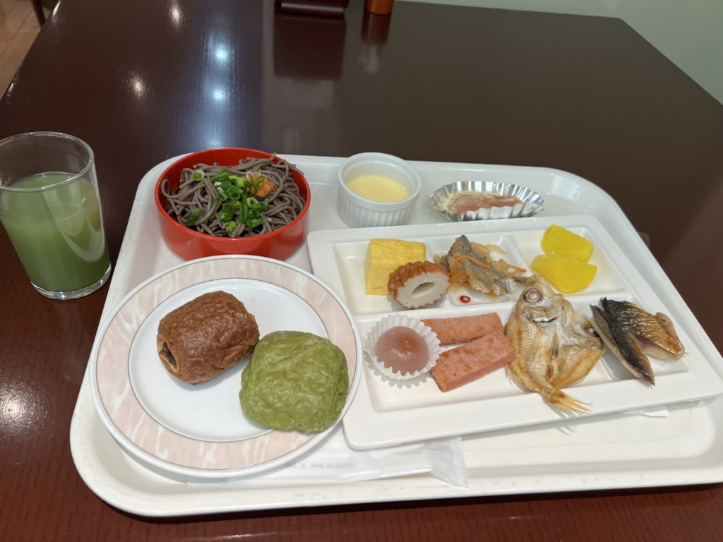 2日目のホテルでは朝食付きではなく、どこかのカフェなどでモーニングを食べるか出雲大社に行ってから朝食を食べようと思っていたのですが、カメーリアのレストランではなんと出雲そばをはじめ、しじみ汁、のどぐろの干物など出雲名物を楽しめることができます。