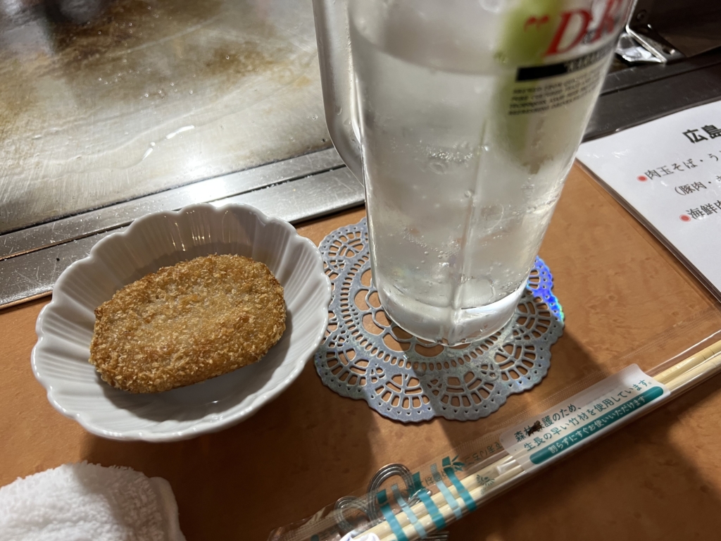 店員さんが気さくで、お好み焼きもおいしく穴場ですよ。コロッケもついてきました。