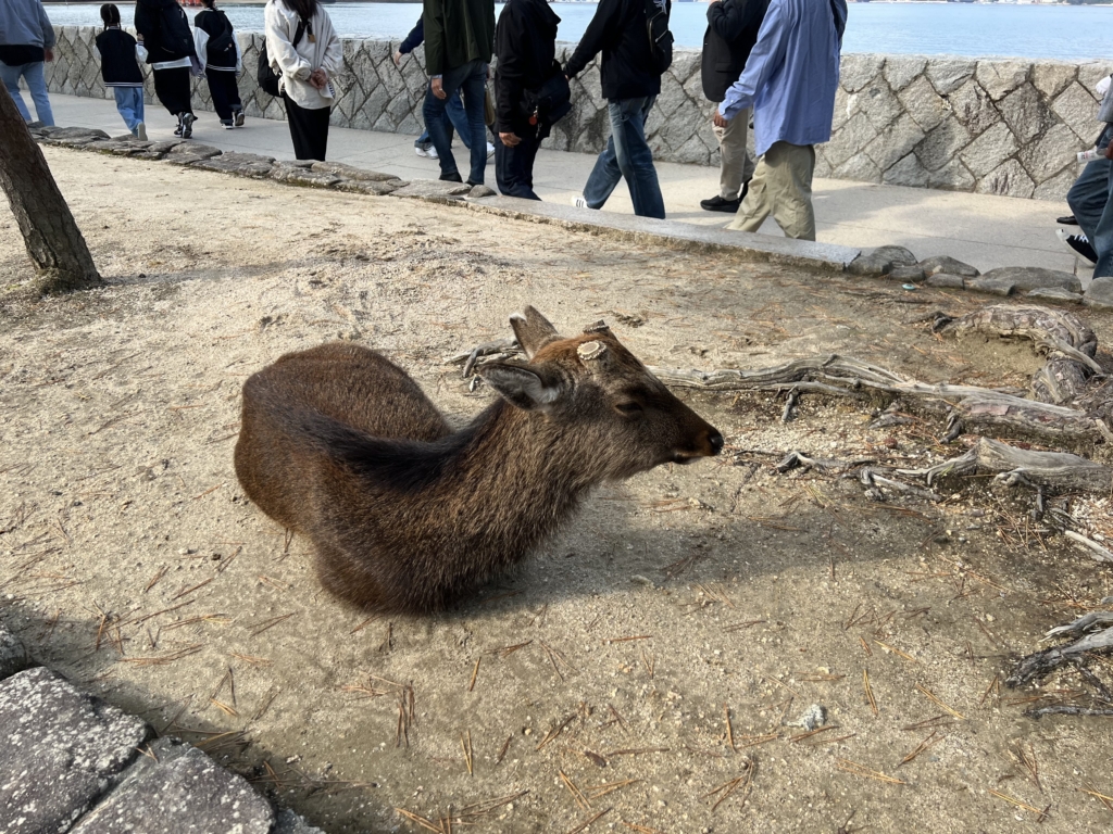 宮島には野生の鹿もいましたね。鹿と言えば奈良のイメージでしたが、宮島にもいるようです。