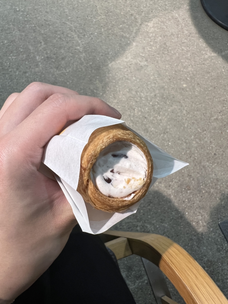 「アンコロネ」というコロネのようなデザートもいただきました。これもおいしいです。東京にあったら人気店になると思います。
